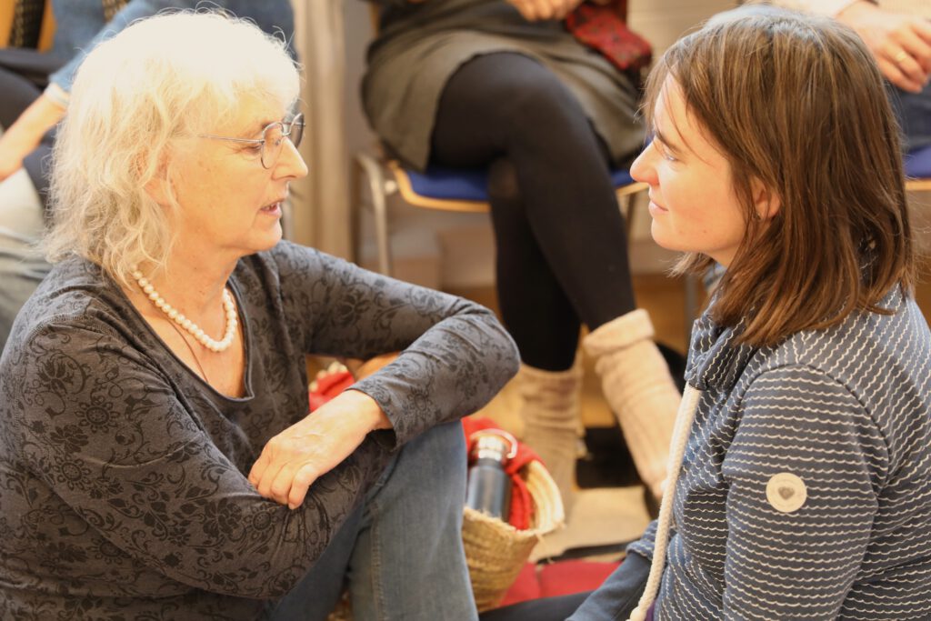 Es kann überraschend befreiend sein, im Gesprächsraum eines Wir-Prozesses nicht mit den eigenen Angehörigen zu sprechen, sondern mit den Töchtern, Söhnen, Vätern und Müttern anderer Menschen. Das Gespräch fließt leichter, das Gehörte kann freier ankommen. Im Spiegel der anderen erkennen wir unsere Wirkung – und können sie verändern. Immer wieder haben wir in Wir-Prozessen heilsame Begegnungen erlebt zwischen Angehörigen verschiedener Generationen erlebt, wenn solche Themen zur Sprache kamen.
