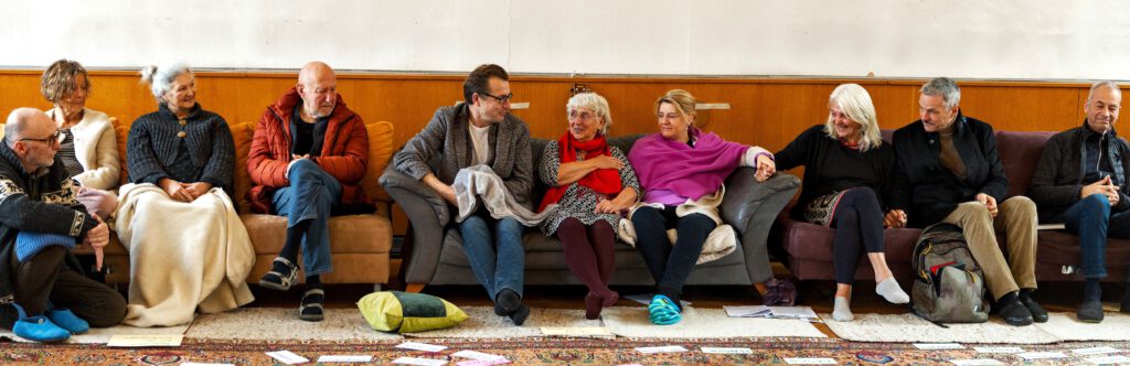 „Wir waren experimentierfreudig und gleichzeitig konservativ“, erzählte Wolfgang bei unserer Erinnerungsmatinee über die Anfänge. Zwischen diesen Polen bewegen wir uns immer noch. Heute aber auf einem gewachsenen Boden von Verbundenheit unter uns und mit der Erde und mit guten Antennen „nach oben“. Egal, wie am Ende unsere Entscheidungen aussehen werden – ich glaube nicht, dass sie uns auseinanderbringen. Diese Zuversicht gibt mir die Begegnungskultur, die ich beim Rückblick auf unsere ersten 15 Jahre und in der darauffolgenden Winterintensivzeit erlebt habe. Um eine meiner Weggefährtinnen (Birgit Schaldecker) zu zitieren: „So lang wir im Kreis stehen und von dem sprechen, was uns wesentlich ist, habe ich das Vertrauen, dass wir das Leben meistern.“