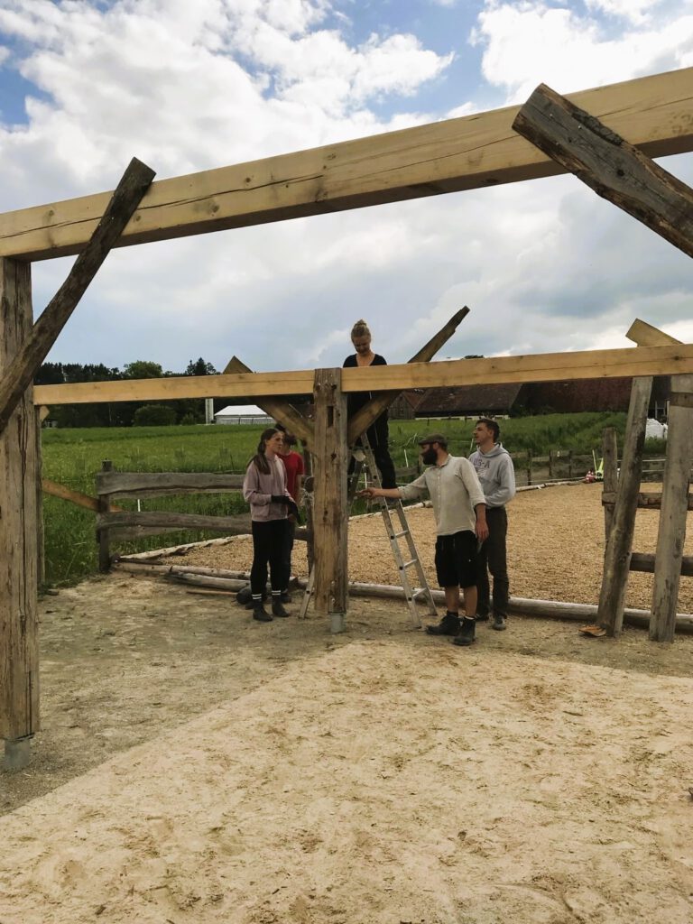 Was mich am tiefsten berührt, ist die Eigeninitiative der Jugendlichen. Es war ihr Impuls, ihre Sehnsucht, die dieses Projekt ins Leben gerufen hat. „Wir wollen Pferde hier haben – und wir kümmern uns darum!“ Dieser Satz war der Anfang von allem. Ich habe erlebt, wie aus dieser Begeisterung über Jahre hinweg echtes Dranbleiben, Teamgeist, Anstrengungsbereitschaft und Verantwortungsbewusstsein gewachsen sind. Die Mädchen haben unzählige Arbeits- und Bauaktionen geplant und umgesetzt, gemistet, Zäune gebaut, Paddockflächen aus- und umgebaut, Heu und Stroh organisiert, einen Unterstand und eine Sattelkammer gebaut, einen Reitplatz angelegt und sich in Themen wie Pferdegesundheit, -kommunikation, Haltung, Training, Weidepflege, Fütterung und vielem mehr eingearbeitet. Sie wachsen mit ihren Aufgaben – und ich darf, gemeinsam mit anderen Erwachsenen, den Raum dafür halten.